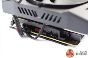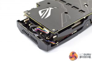 Next to these headers we find the small connector for the graphics card's own fans. I do have to call ASUS out for this, as it is a horrible multi-colour cable that has not been sleeved. It is a minor point, for sure, but when you are paying £999 for a graphics card it is certainly not too much to ask that the cables should be black rubber at the very least. This just looks lazy on ASUS' part, particularly as the connector is exposed at the end of the card, so you will be able to see it once the card is installed in your case.
