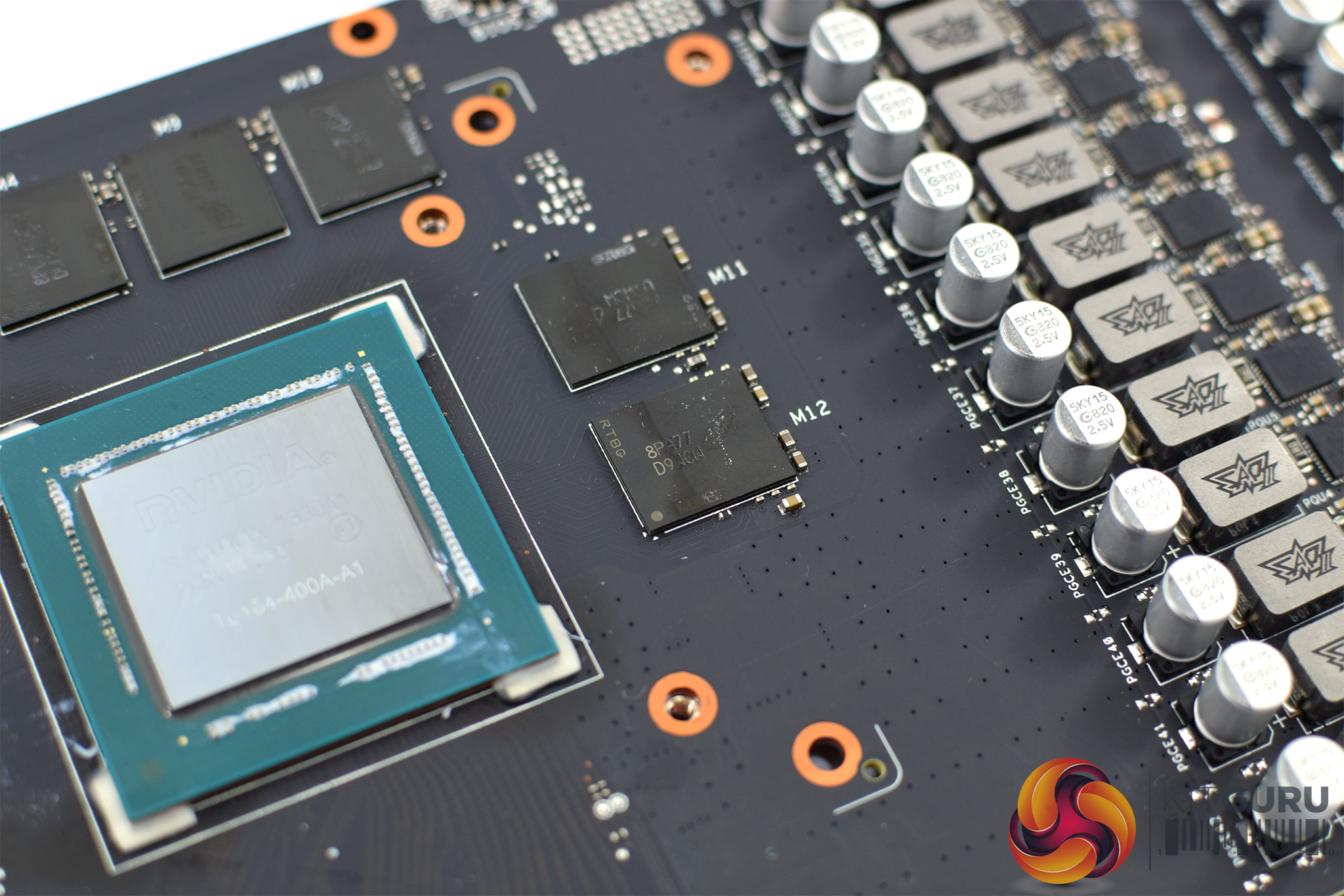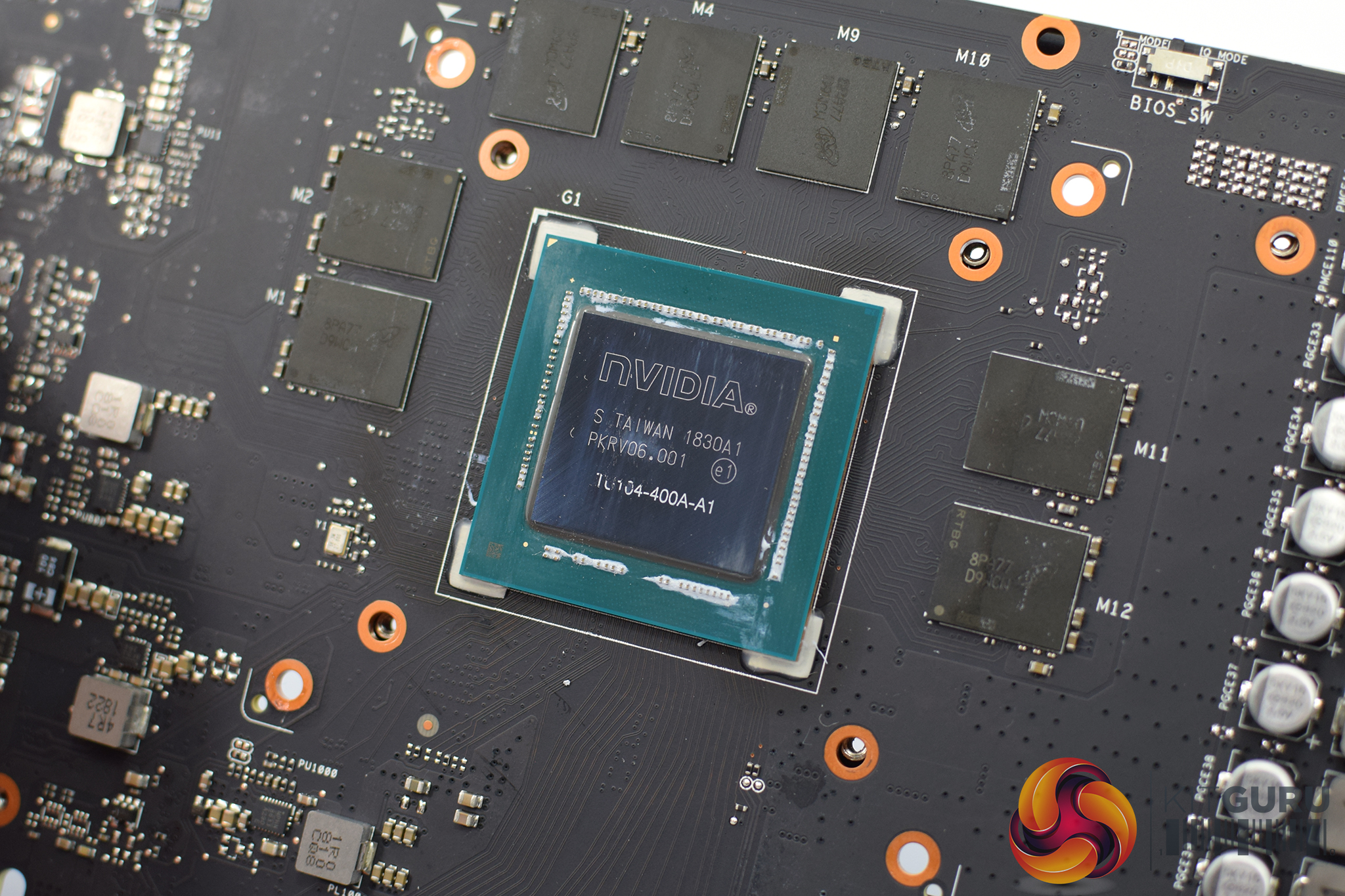 The 8GB of GDDR6 memory comes courtesy of Micron, with the chips labelled 8PA77D9WCW. The TU104 GPU is also labelled ‘400A' – with the A meaning this is a binned chip that Nvidia has allowed partners to sell with a factory overclock.