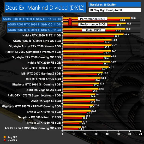 When overclocking the Strix 2080 Ti, we used GPU Tweak II with the performance BIOS engaged. We maximised the the voltage, power limit and temperature target sliders before adding +145MHz to the GPU core and +700MHz to the memory. It’s worth noting that the ‘+145MHz’ is relative to the out of the box clock speed (1650MHz), so considering we tested the card at 1665MHz, we really added an extra +130MHz to that.