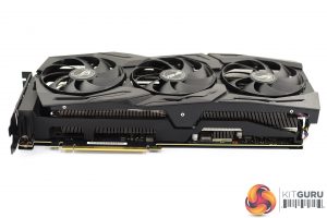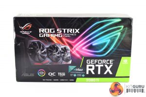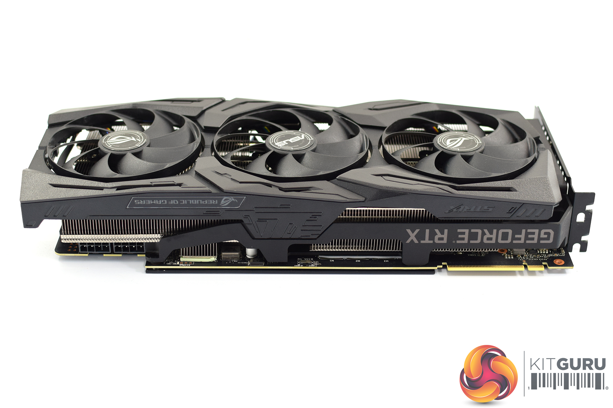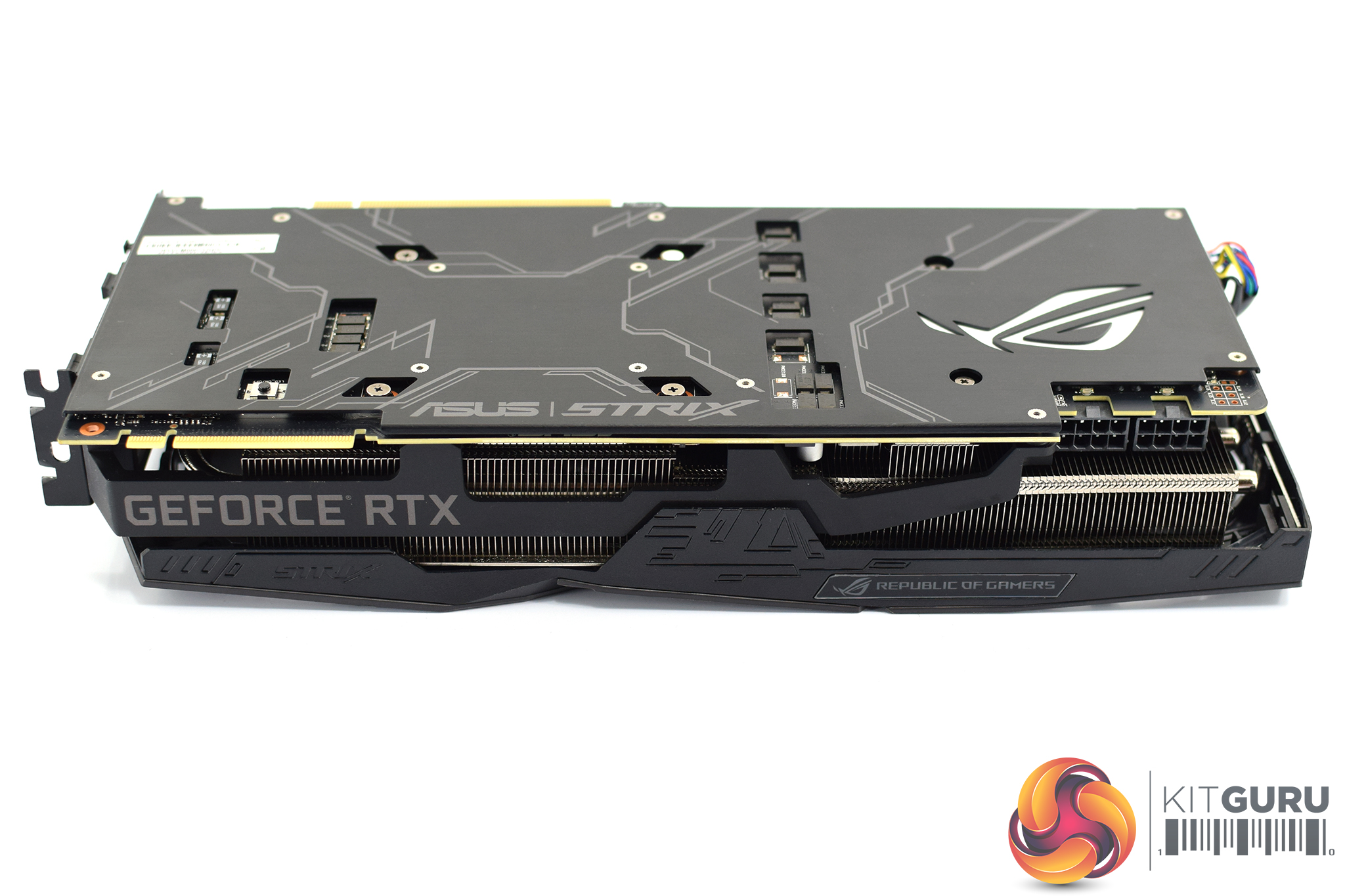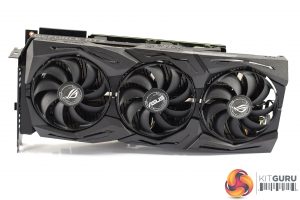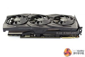 Getting our first look at the card itself, it is essentially indistinguishable from the Strix 2080 model. As far as I can tell, the cooler and shroud is exactly the same between both cards – if you had the two side by side, it would be almost impossible to say which was which.