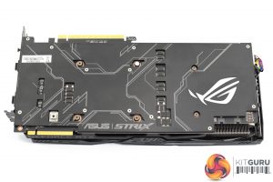 ASUS has stuck with its lovely brushed metal backplate, too, and I really quite like the look of it, though be careful not to touch it as it is really quite hard to clean fingerprints off! The ROG logo on the back is RGB illuminated as you would expect, though as with the Strix 2080, there is a master power button for the RGB lighting just above the NVLink connector – push this, and all the RGB will turn off. Simple.