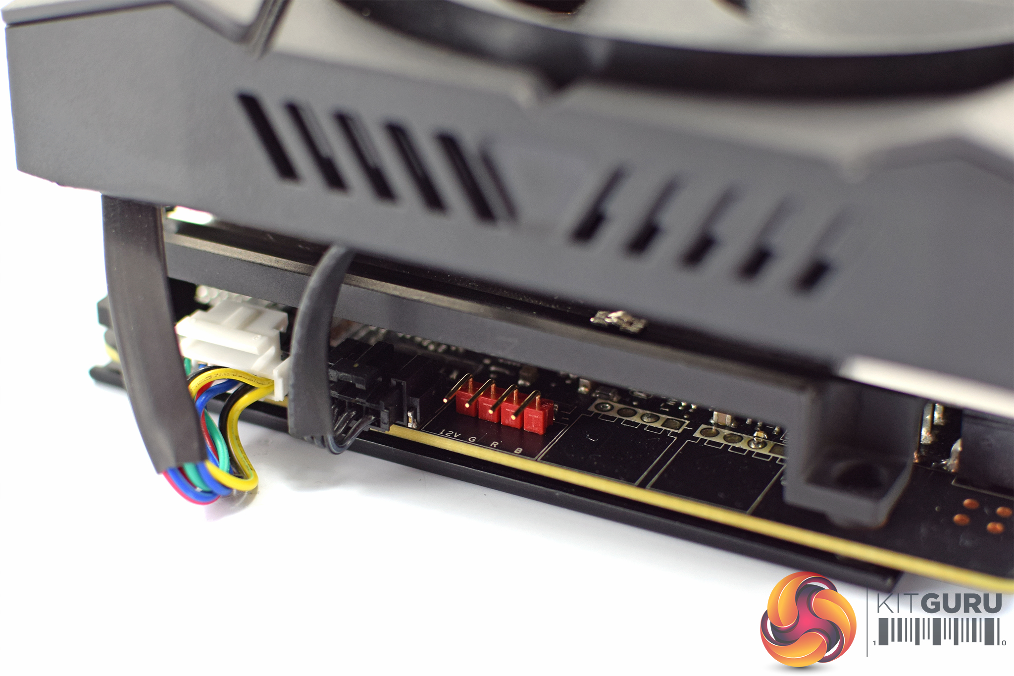 Just at the end of the card, we again find a 4-pin RGB header that lets you connect an RGB fan or LED strip (or whatever you should want), although there is one surprise move – the Strix 2080 had two extra 4-pin fan headers here, but these are missing on the 2080 Ti. I think that is a shame as I do appreciate the ability to have your case fans controlled via the GPU temperature, and not the CPU temperature, as the latter doesn't really heat up that much when gaming.