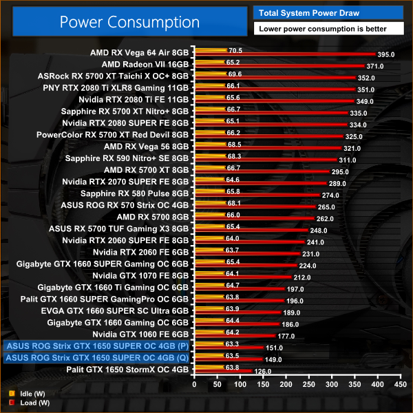 Lastly, as for our power draw figures, there's nothing to split between the two BIOS as they are operating at essentially the same clocks speeds. That puts power draw around 25W above the GTX 1650, but still less than GTX 1060. RX 580, which is closely matched in terms of gaming performance, draws almost double the amount of power as this Strix card.