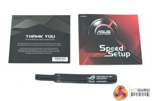 Inside, there are three included accessories – a thank you note, a quick start guide, and 2x hook and loop straps.
