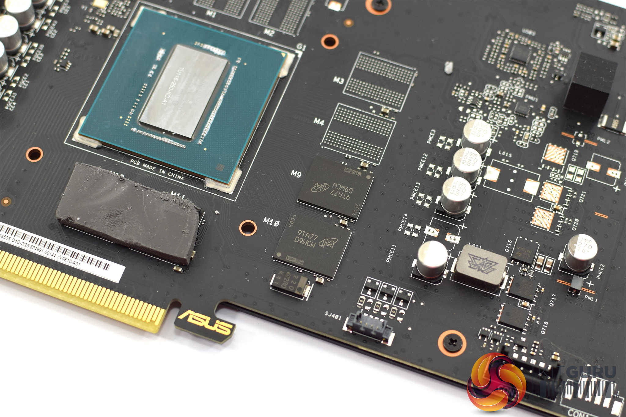Only 4 screws need to be removed to dissemble the card, and then we get access to the PCB. This is a custom job from ASUS, and the empty spaces left for unused memory modules and inductors suggest the design has been carried down from the RTX 2060/2070 SKUs which launched several months ago.