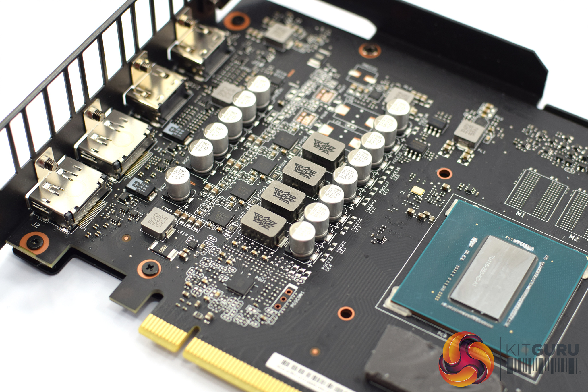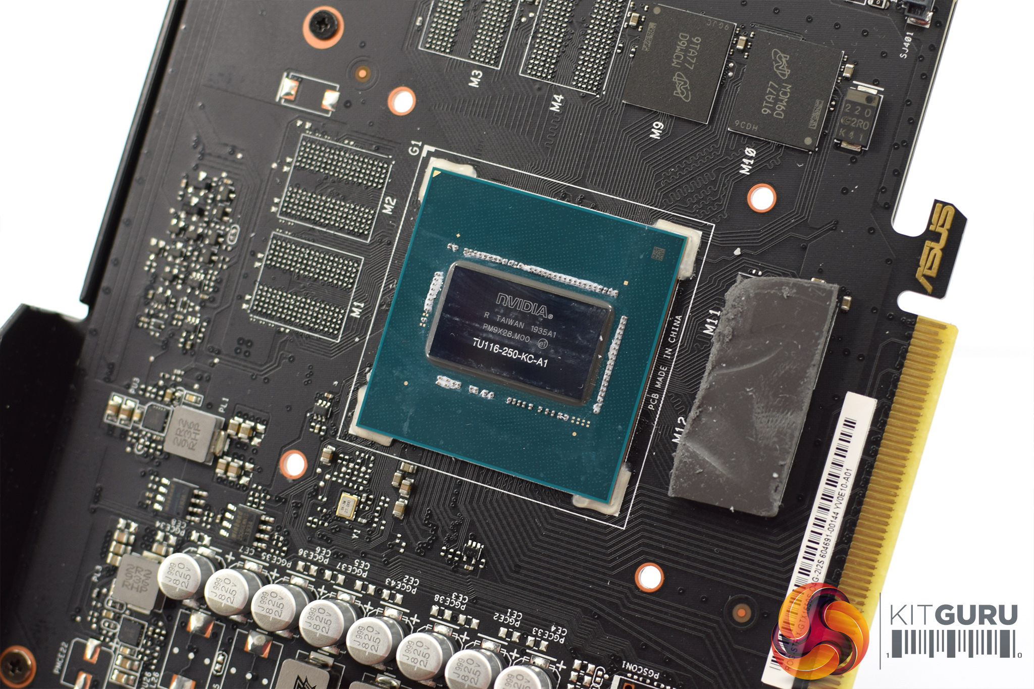 Still, there's a 4 phase VRM for the GPU, and a single phase for the memory. Speaking of the memory, these 12Gbps modules come from Micron, and each chip is labelled ‘9TA77D9WCW'. Lastly, the GPU is labelled ‘TU116-250-KC-A1' indicating this is a cut-down version with 1280 cores.