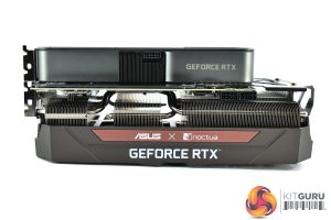 As it turns out, when ASUS refers to a ‘tailor made’ heatsink for this card, it basically means they’ve up-sized the existing heatsink from the TUF 3070, as you can see above. It’s still got 5 heatpipes just like the TUF, but it’s bigger across every dimension.