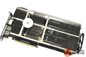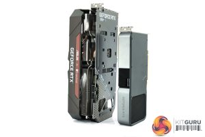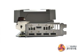 Just to the right of the middle of the card, we can note a BIOS switch, with a choice of Performance and Quiet modes. These primarily affect fan speed, but there is a marginal (30MHz) increase to clock speed when using the Performance BIOS as well.