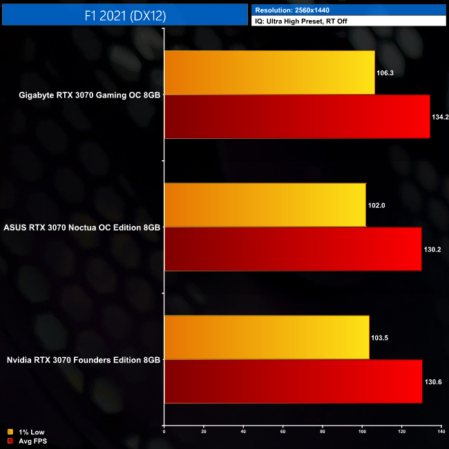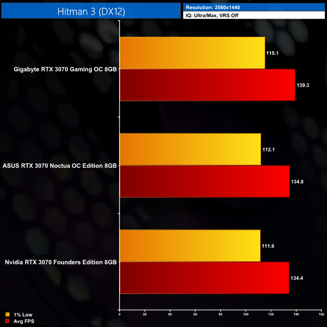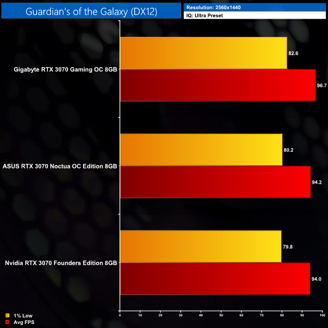 Following on from our 3DMark benchmarks, it's no real surprise to see there is hardly any difference between the three RTX 3070s we have tested. The Gaming OC does prove the fastest of the three, but we're talking differences of just 2-3%, so nothing significant at all. Likewise, the ASUS RTX 3070 Noctua Edition is fractionally faster than the RTX 3070 Founders Edition, but only by the smallest of margins.