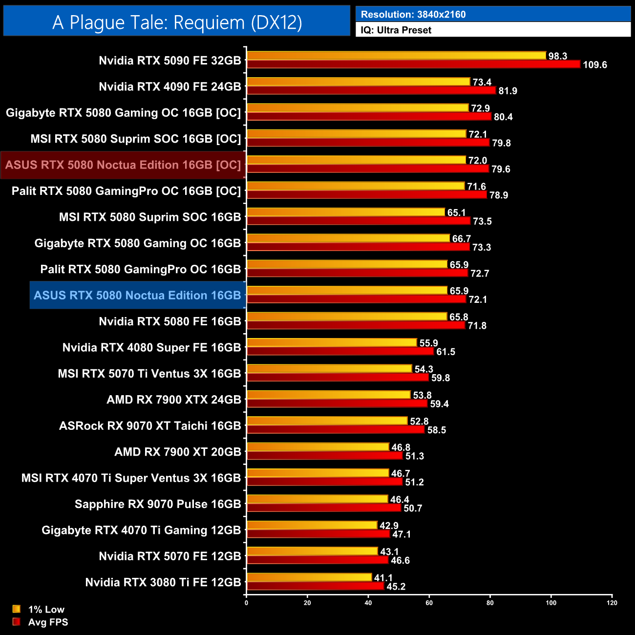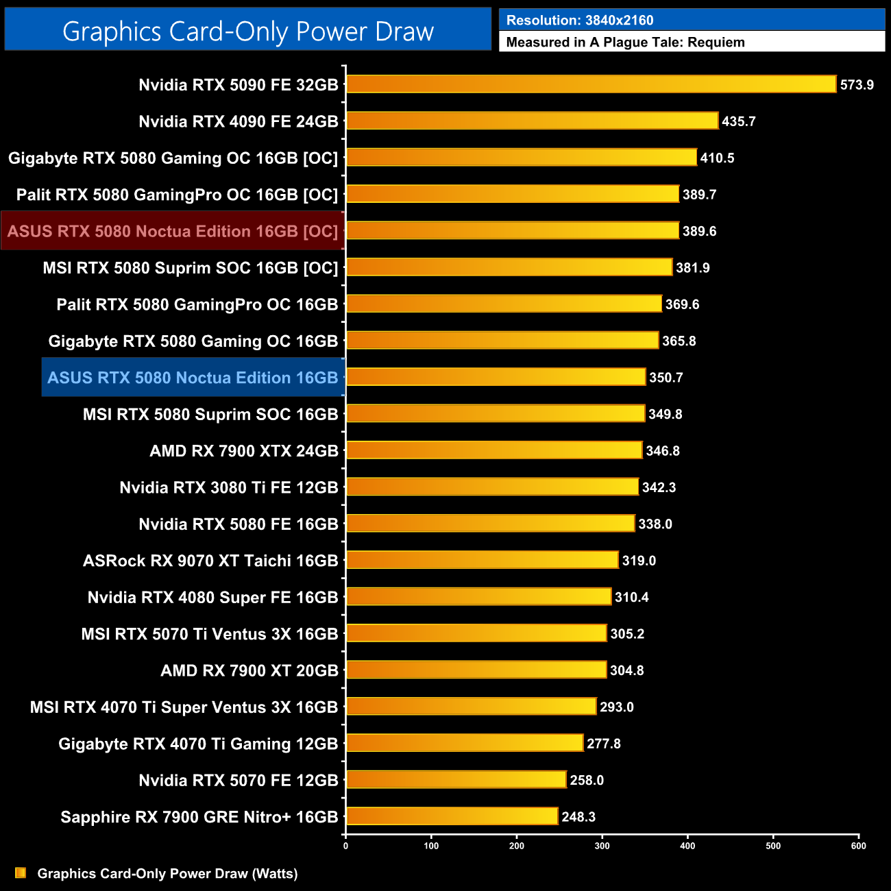 Power draw did also increase, but still didn't come close to the theoretical 450W maximum, instead pulling just under 390W in A Plague Tale: Requiem at 4K.