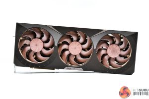Then for what we are all here for – the card itself. It really is Noctua all over, with a brown shroud and the three 120mm NF-A12x25 G2 fans on show with the tan fan blades and beige frames. There's also a couple of grey strips in the shroud to help break things up a bit. I'm not really going to comment on the aesthetics themselves – you'll probably love it or hate it, but safe to say Noctua has enough supporters of its iconic colour theme, so I am sure plenty of people would love to have this card in their systems.