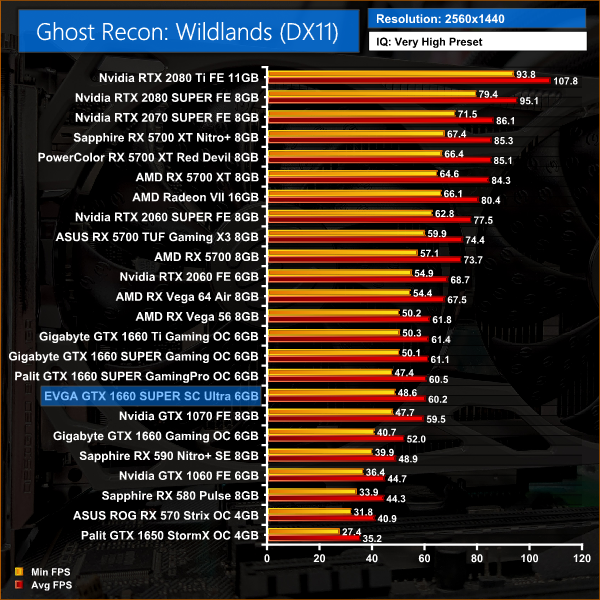 Things are particularly close in this title, where there's just 1.3FPS between our 1660 SUPER cards at 1080p.