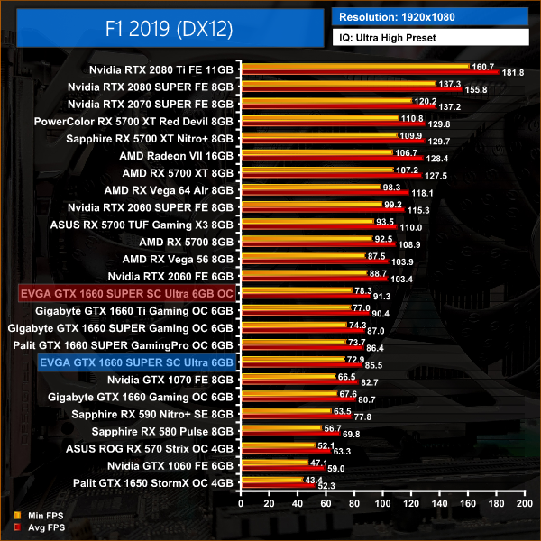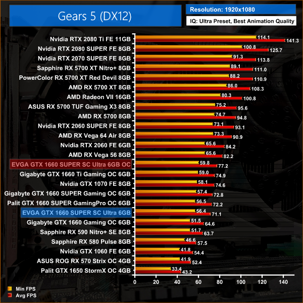 This overclock saw gains between 6-9%, with the biggest performance difference coming in Gears 5 with a 9% (or 6FPS) framerate boost.