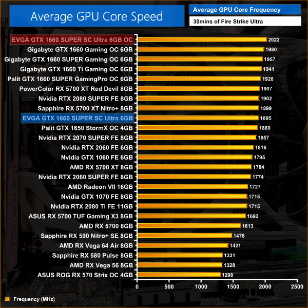This pushed our clock speed up to 2022MHz on average, or 127MHz above stock behaviour.
