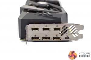 So if you look at the outputs above, you can see the two HDMI ports and the two DisplayPorts on the left-hand side are segregated by lines etched into the I/O bracket. Essentially, you can only use either pair – either the top HDMI ports, or the bottom DP ports. The single HDMI, DP and USB-C on the right-hand side are always active. In a nutshell, you can have 3x HDMI, 1x DP and 1x USB-C outputs or 3x DP, 1x HDMI and 1x USB-C outputs at any given time.