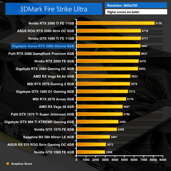 It's a good start for the Aorus RTX 2080 Xtreme. There is some variation in scores across the three different tests, but in every one it is right up there with the fastest RTX 2080s we have tested so far – namely, the ASUS ROG Strix 2080 and the Palit GameRock Premium 2080.