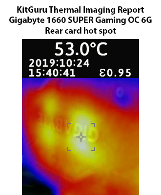 Just to confirm the excellent results, there's nothing at all to worry about based on the thermal gun images. Bear in mind the backplate on this card is made of plastic, so it's not going to transfer heat away from the PCB like a metal backplate, but the results are excellent nonetheless.