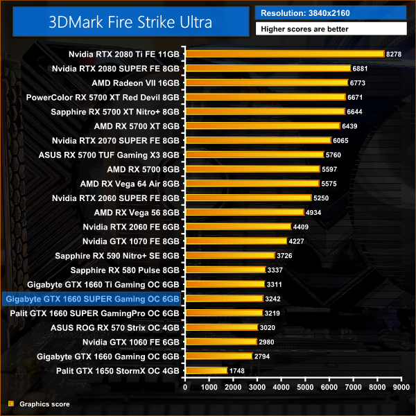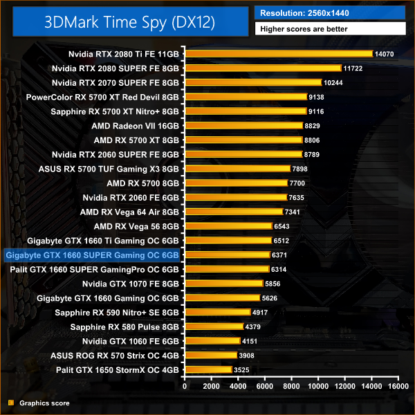 It's an interesting start for the Gigabyte 1660 SUPER, performing essentially on-par with the GTX 1660 Ti – it's also 13% faster than the 1660 in Time Spy.