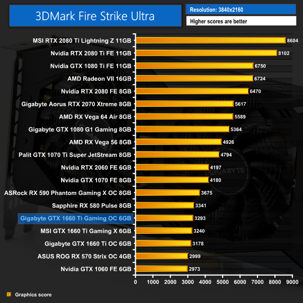 As expected, the performance of all three GTX 1660 Tis is very close across our 3DMark testing, though the Gaming OC 6G does just edge ahead of the MSI Gaming X.