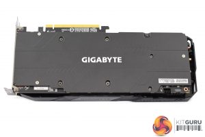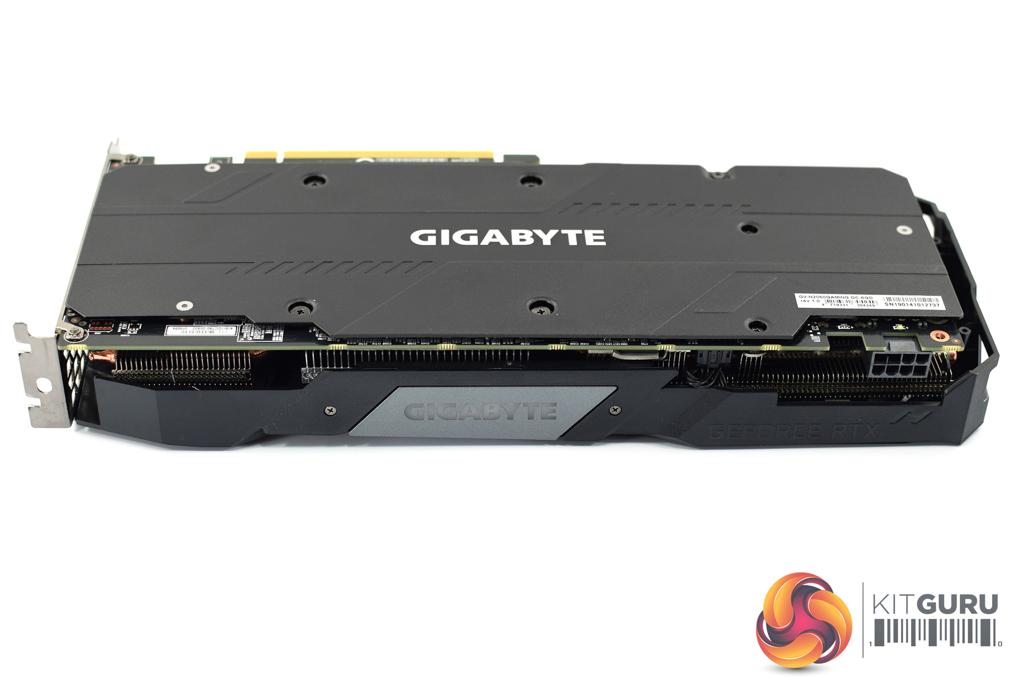 The front side of the card is home to the Gigabyte logo, and this is the only RGB zone on the card. RGB lighting clearly isn't a big focus for the Gaming OC Pro – we've seen cards from MSI and ASUS which have multiple RGB zones across the shroud and backplate – so whether you see this as a positive or a negative depends on your opinion of RGB lighting.