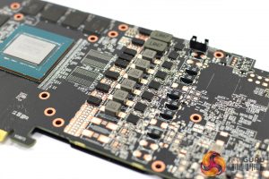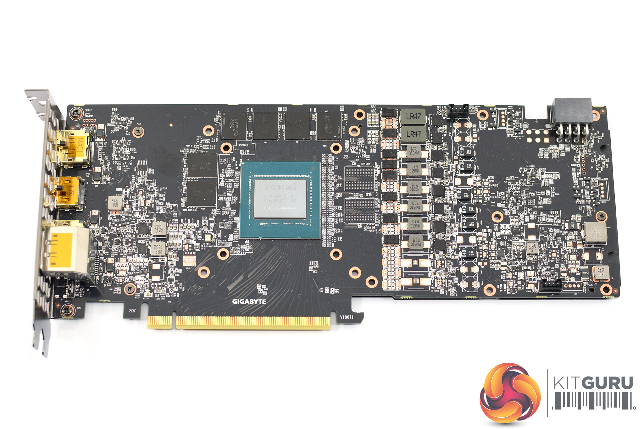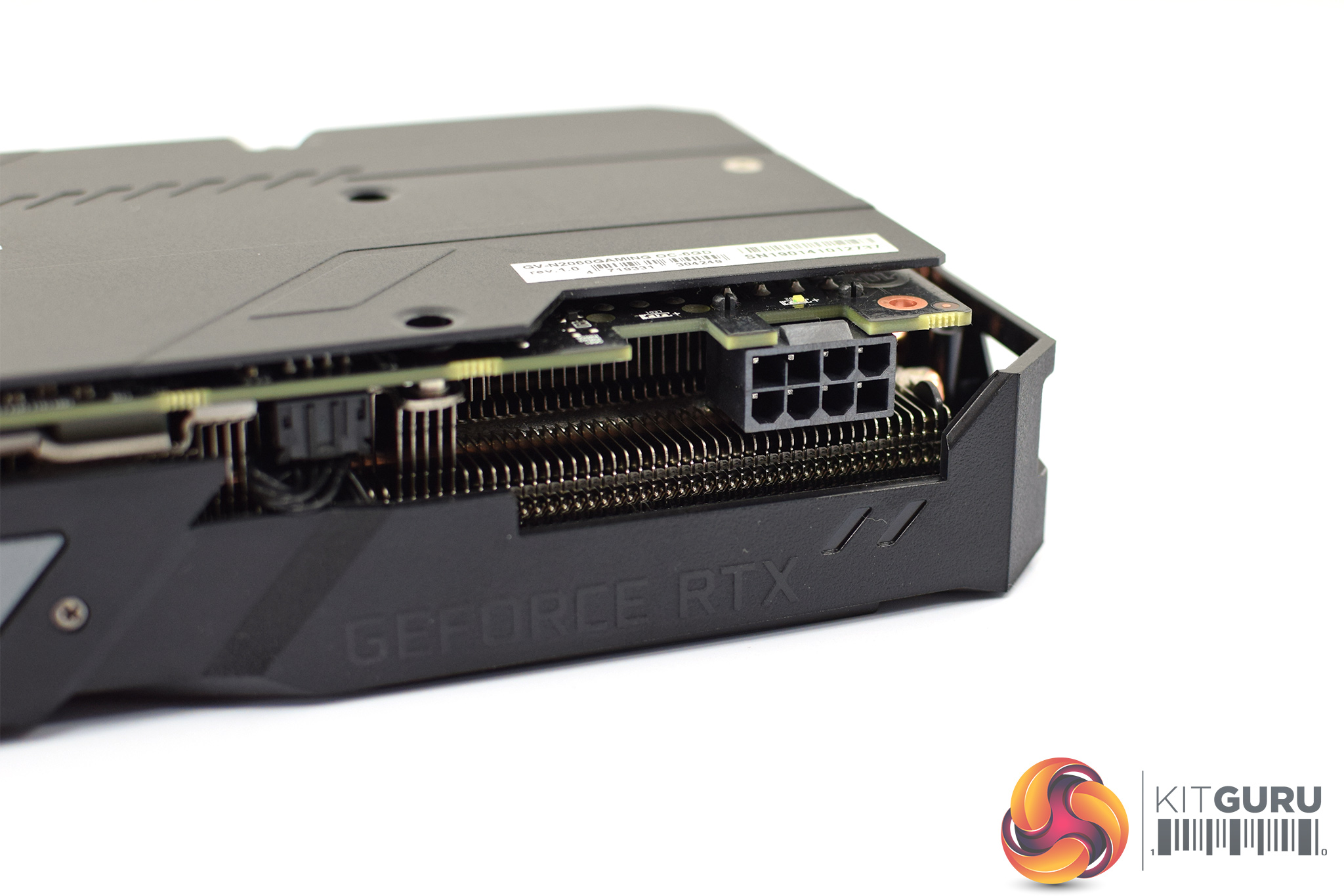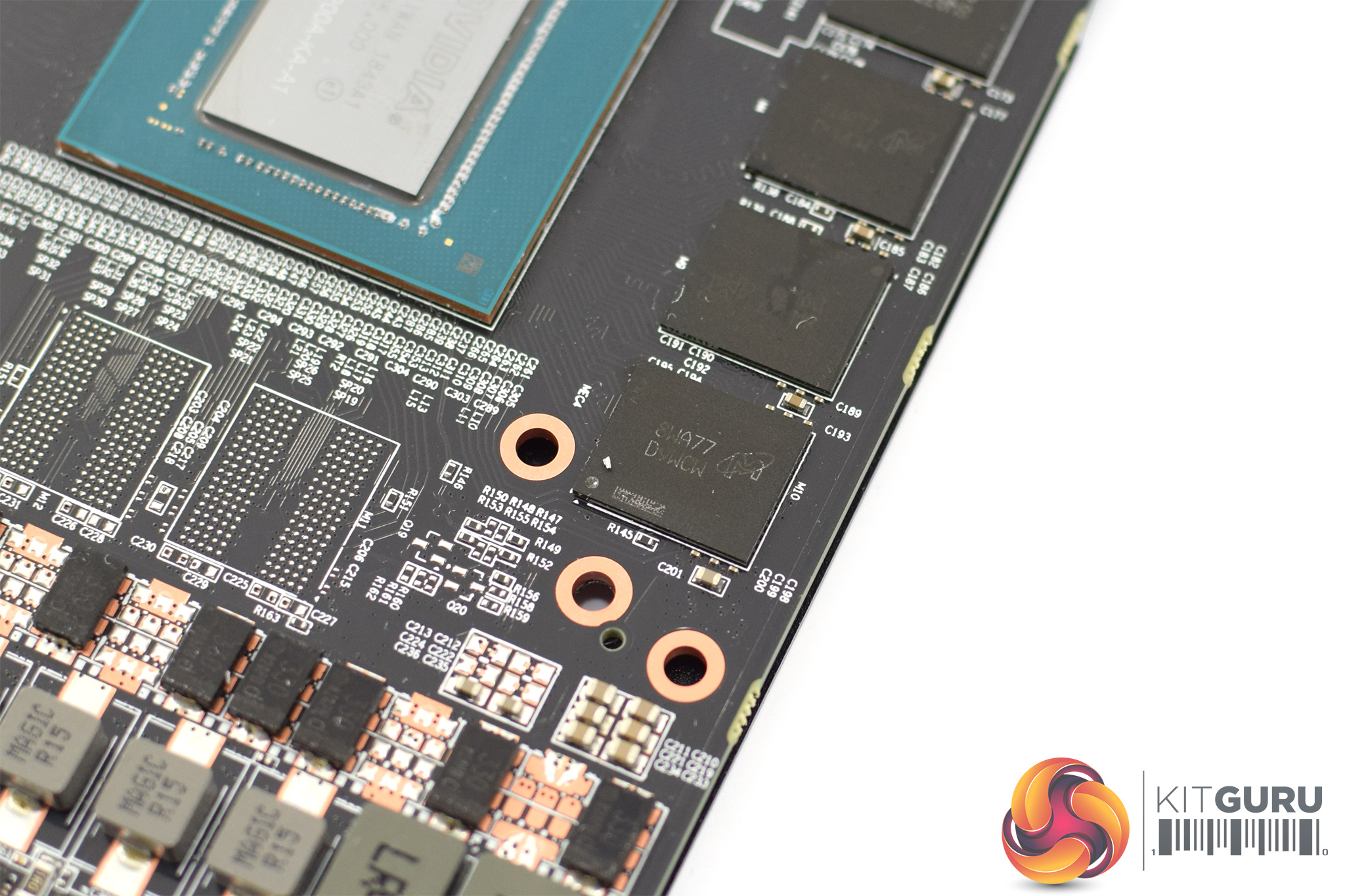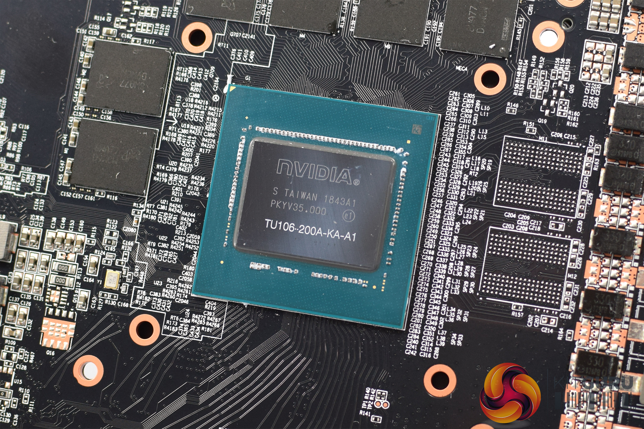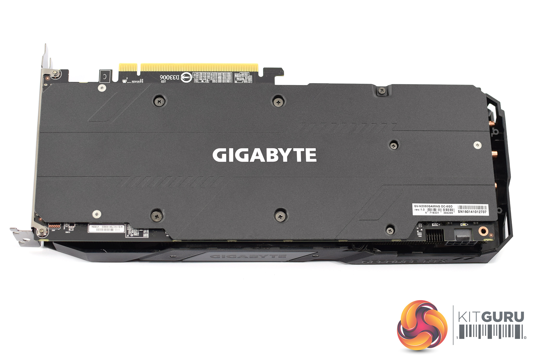 Opening up the card requires removing 7 screws from the backplate, and then we get a look at the PCB. Here, Gigabyte has gone for a 6+2 power phase design, the same configuration as used with the Founders Edition. The GDDR6 memory chips come from Micron – each chip is labelled ‘8WA77D9WCW' – while we can also see the GPU die is labelled ‘TU106-200A', meaning this is a higher-binned chip.