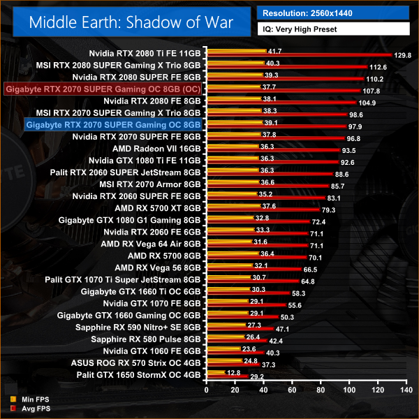 Our 8% increase in clock speed scaled almost perfectly with our increase in frame rates at 1440p – where we saw an average improvement of 9% with this overclock. This puts the 2070 SUPER within touching distance of the 2080 SUPER, and bear in mind that card costs around £160 more than this Gigabyte model.