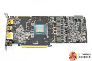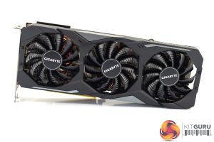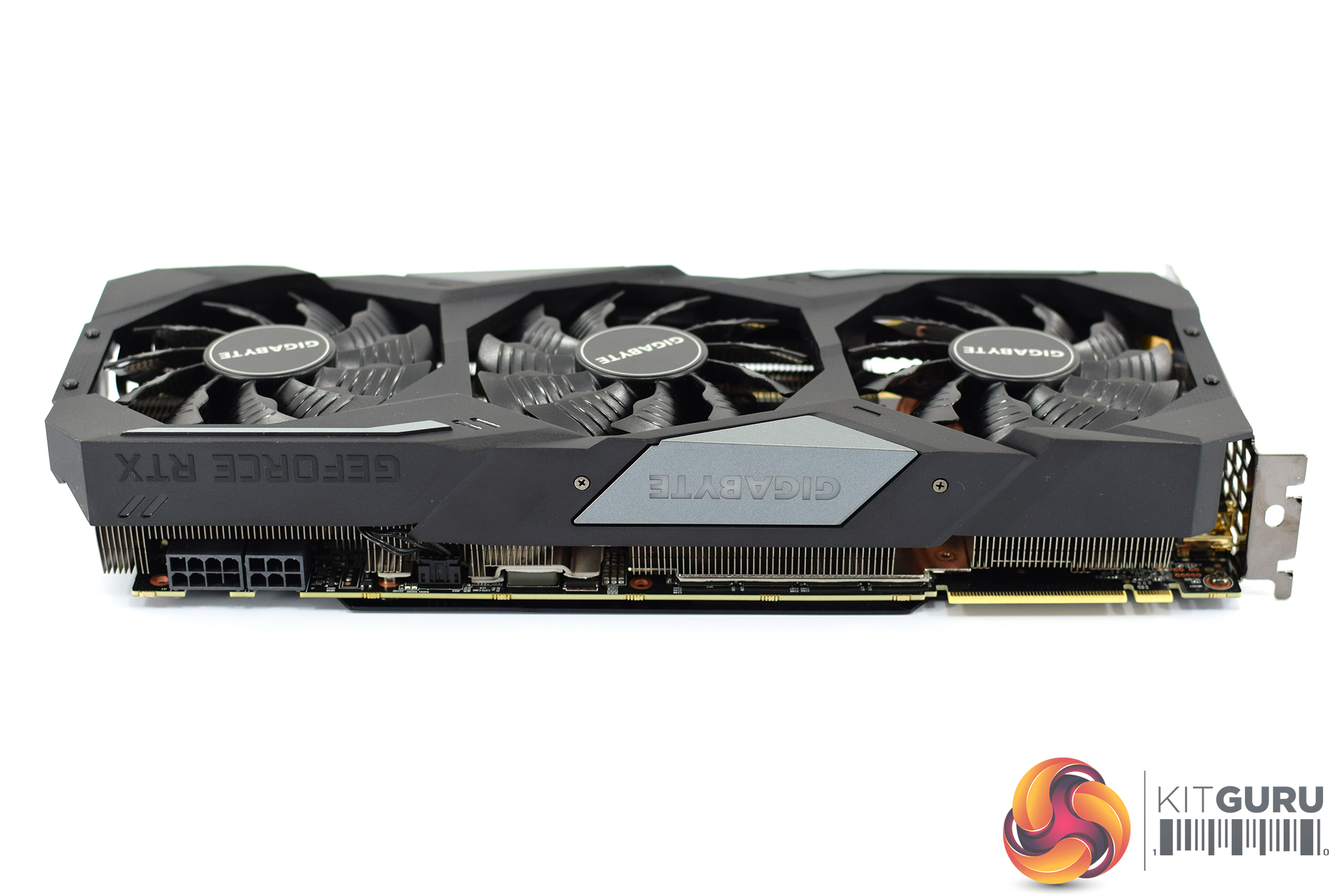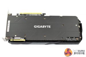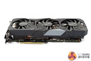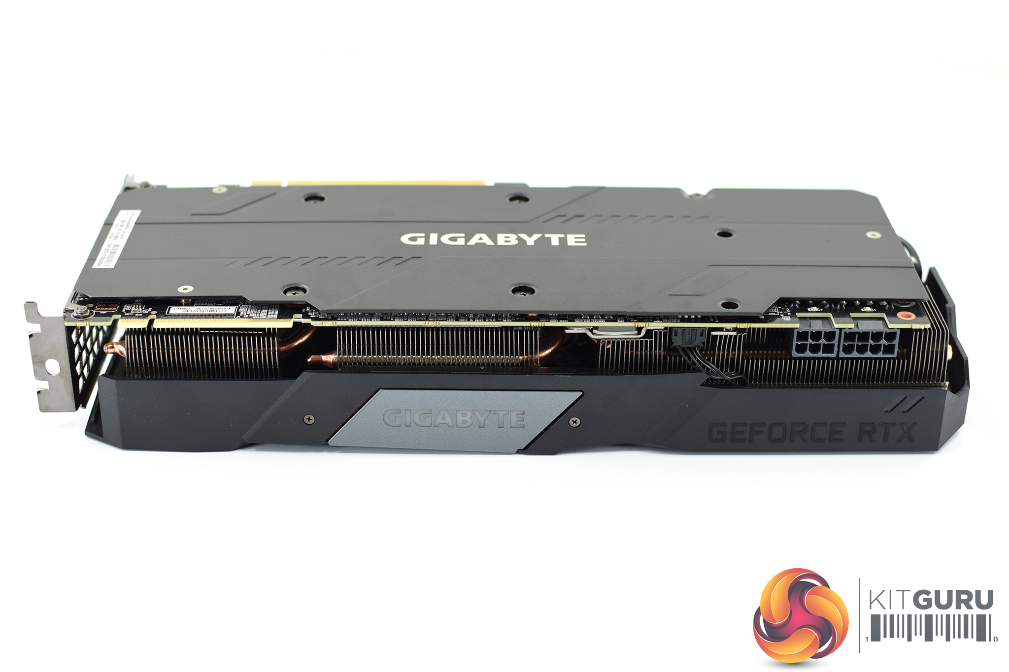The front side of the card (as you would see it once installed in a case) is home to a small-ish Gigabyte logo which is illuminated by RGB LEDs – these are user configurable from within Gigabyte's RGB Fusion software. As detailed in the video review on the front page, I had issues getting RGB Fusion to work, but this is likely because I have one of the first Gaming OC cards, and Gigabyte is looking into the issue further.