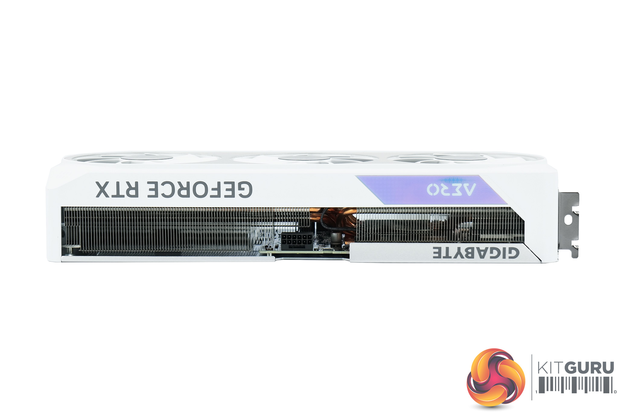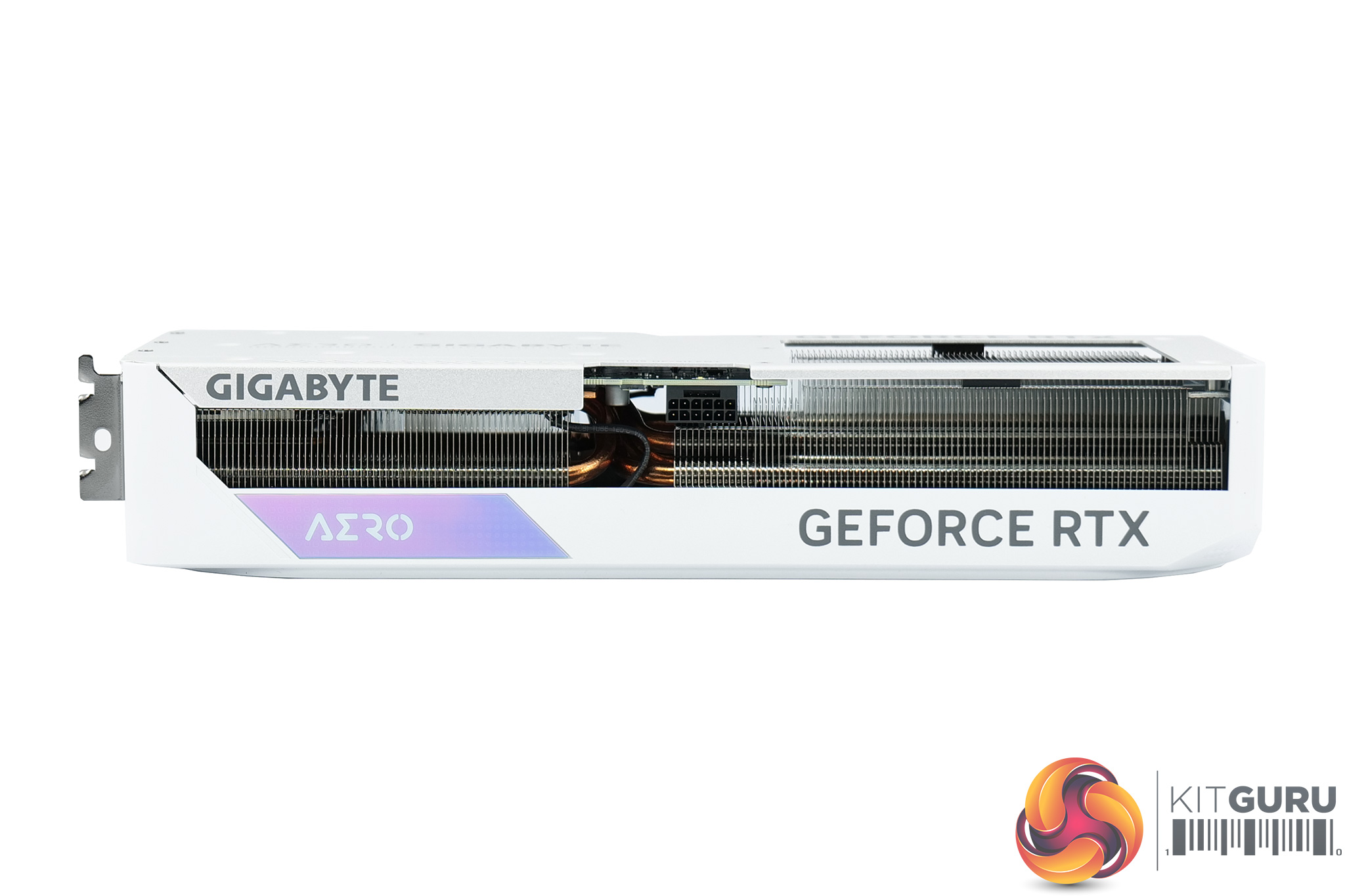 The front side of the card is home to the GeForce RTX logo, while the Aero logo towards the I/O bracket is the sole RGB lighting zone on the card.