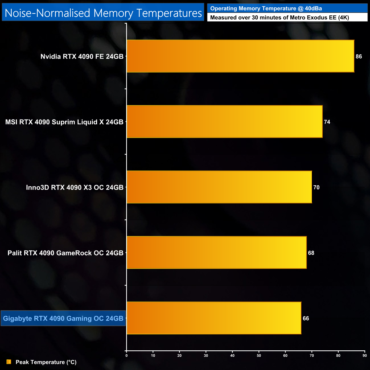 Memory temperatures remained at 66C though, and that's still a best-in-class result for the Gaming OC when noise-normalised.