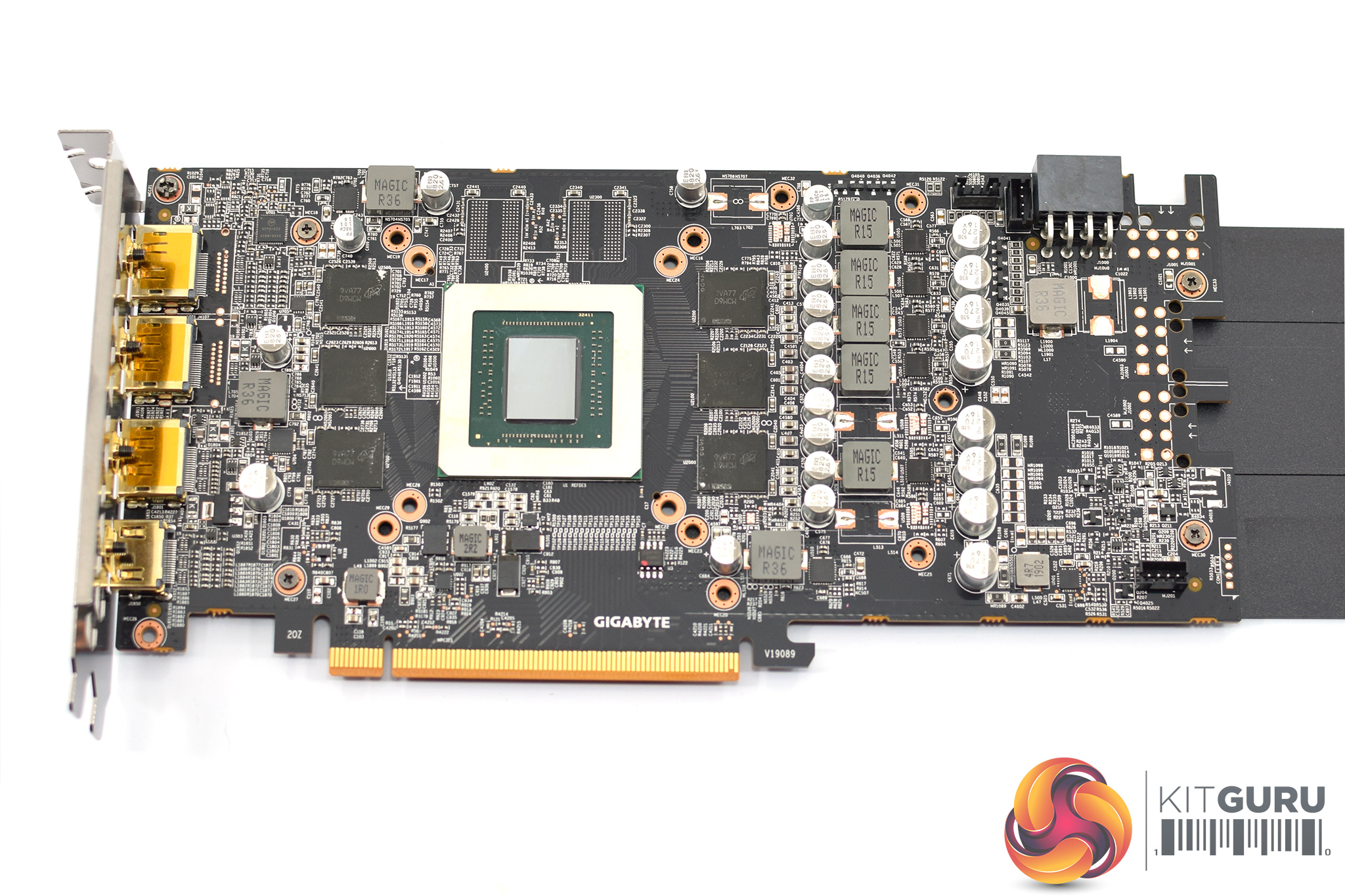 Gigabyte is also using its Windforce 3X cooler, with three 80mm fans. As we've seen previously, the middle fan spins in reverse relative to the outer fans, which Gigabyte says reduces any turbulence and enhances ‘the airflow pressure.'
