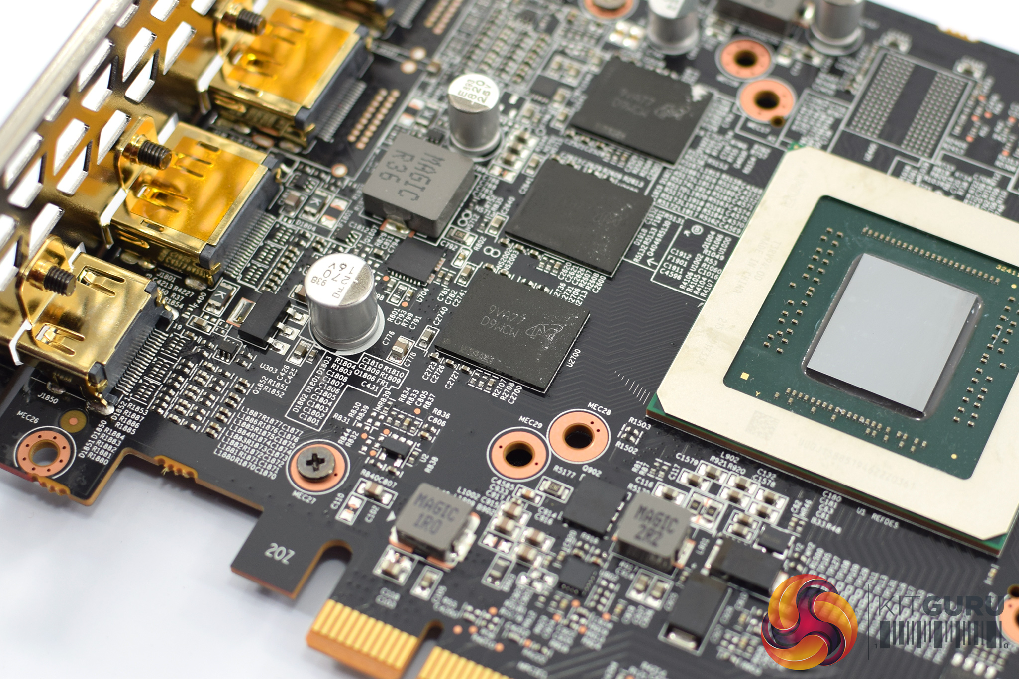 We can also get a look at the memory, these are ‘D9WCW' modules from Micron, specified at 14Gbps. Before the BIOS update, memory speed was set at 12Gbps, but the update has adjusted this to 14Gbps for this card.