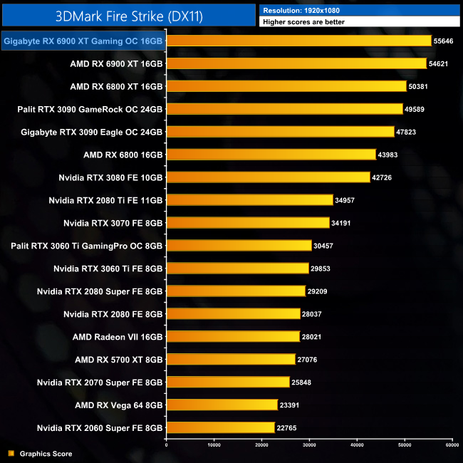 Kicking off with our 3DMark scores, we can see the Gaming OC brings a 2% increase to scores when compared to the reference card, and that applies to Fire Strike, Time Spy and Fire Strike Ultra.