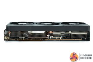 It's obviously sporting a triple-fan setup as well, part of Gigabyte's Windforce cooling solution. Each fan measures 90mm in diameter, while the central fan spins in reverse, a common feature designed to reduce airflow turbulence.