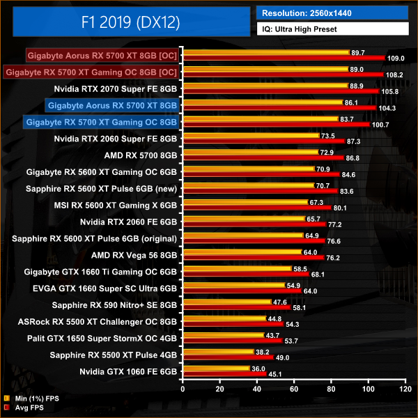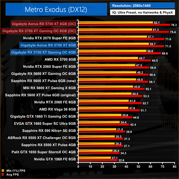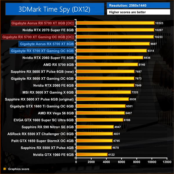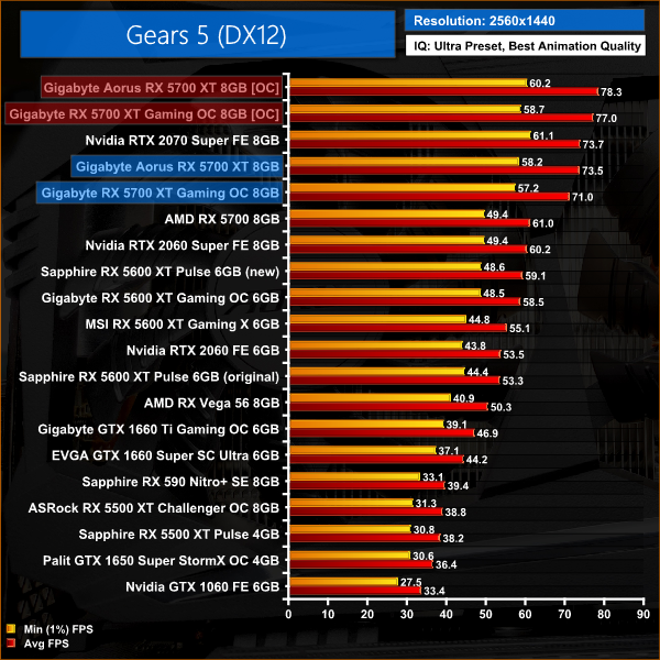 Unsurprisingly, the Aorus still ran faster in our 3DMark benchmarks and in some of the games we retested at 1440p, but the Gaming OC closed the gap significantly to the point where both cards were performing at essentially the same level. In all three games we re-tested, the manual overclock was enough for both 5700 XTs to surpass stock 2070 Super performance.