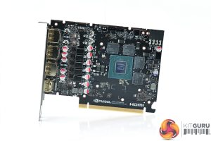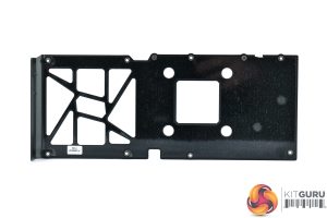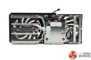 Meanwhile, we can see a full length metal backplate is utilised, with a cut-out behind the GPU core and several cut-outs towards the end of the card to allow air to pass directly through the heatsink and out into the chassis.