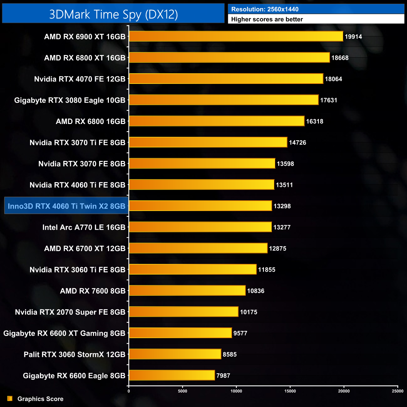 An initial test of 3DMark Time Spy sees the Twin X2 a mere 200 or-so points behind the Nvidia Founders Edition – it's essentially within margin of error here.