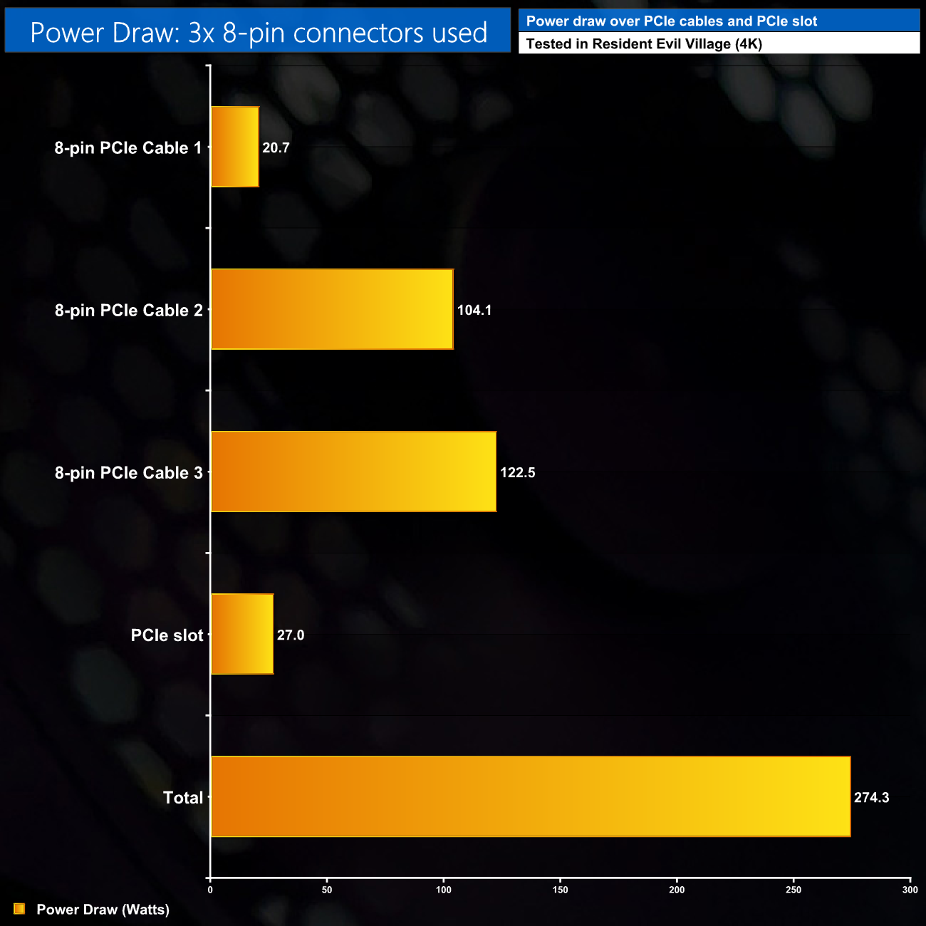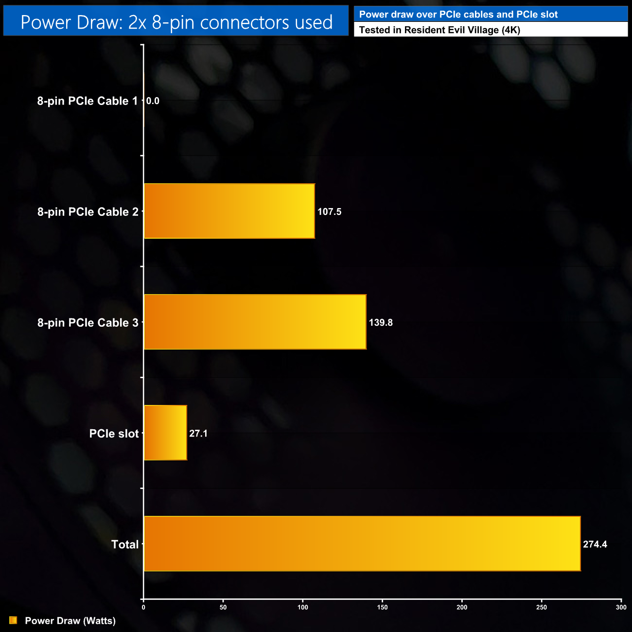 I decided to put this to the test, using Nvidia PCAT to measure power draw over all three 8-pin PCIe power cables and the PCIe slot so we can see exactly where all the power is coming from.