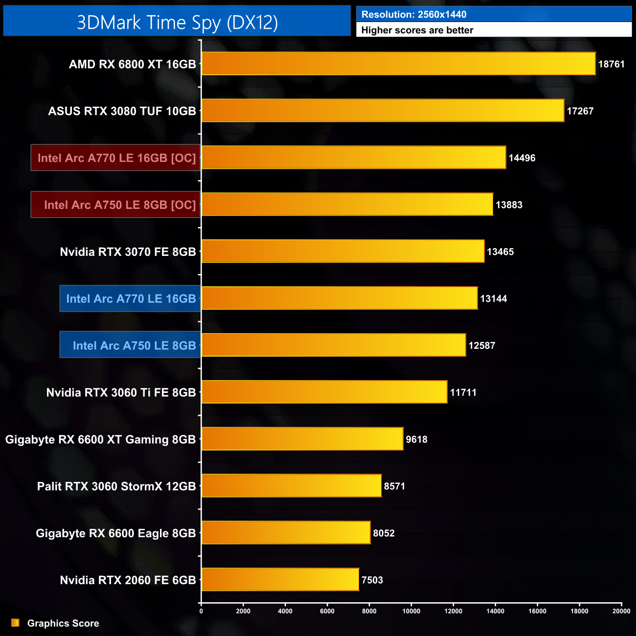 Power draw did increase while overclocked, averaging just over 280W, further reducing the A770's performance per Watt.