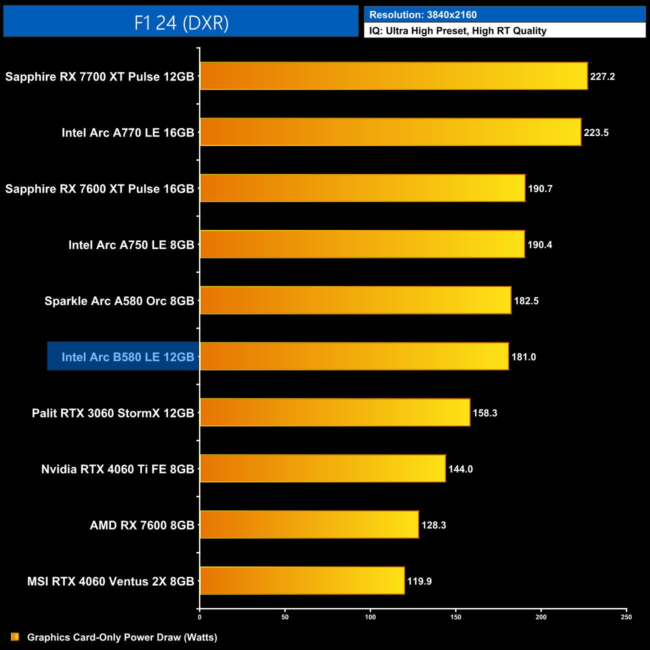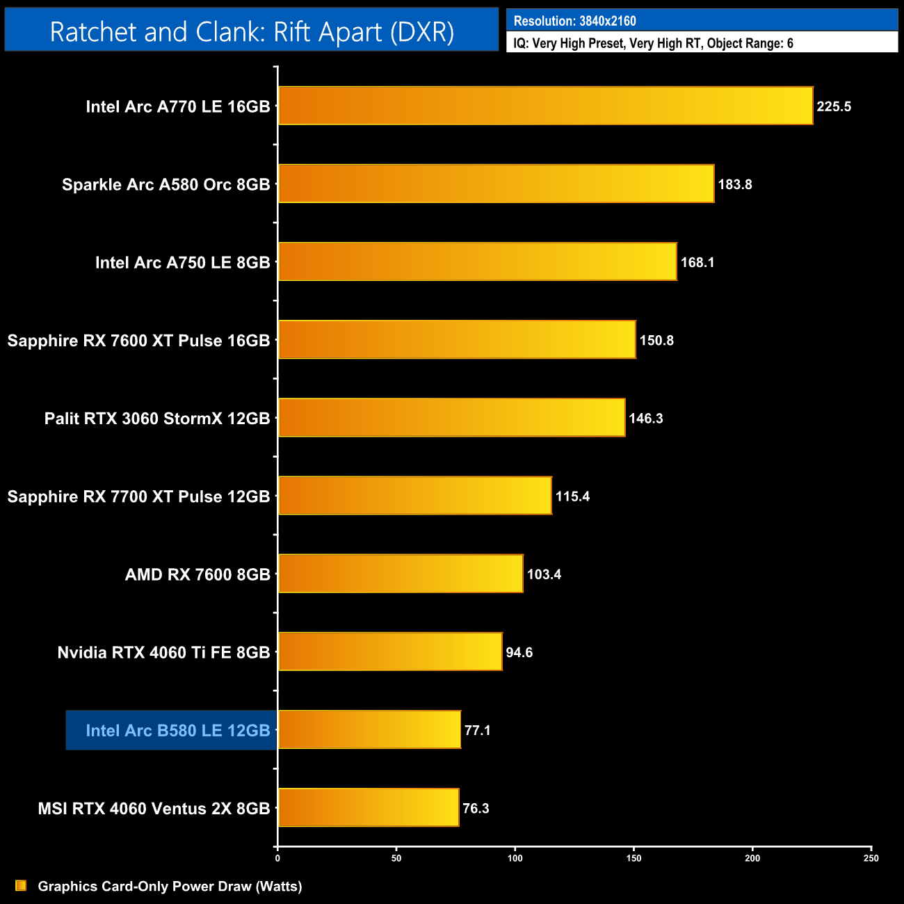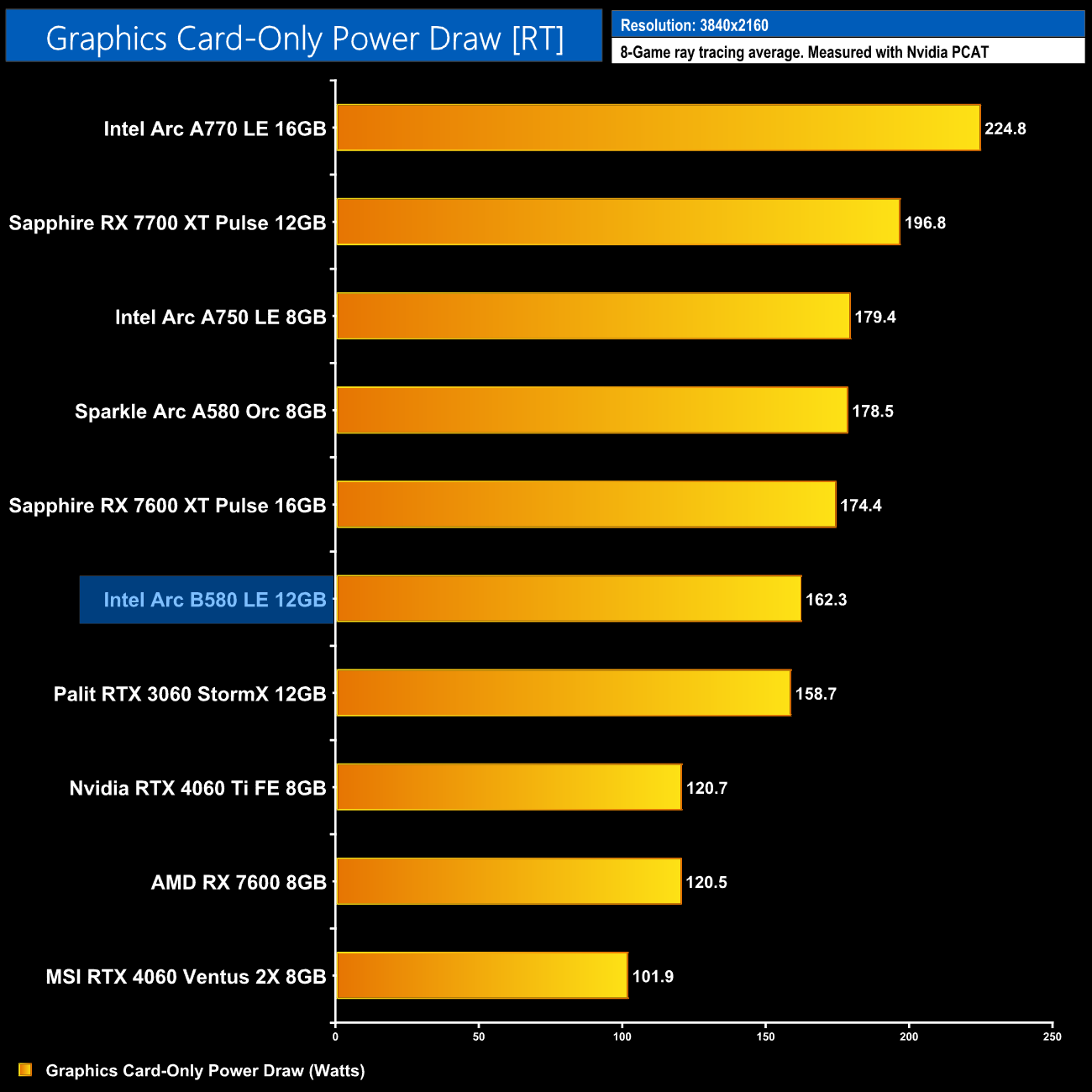 The same goes for 4K ray tracing figures – power actually drops slightly as the GPU is often bandwidth starved at these settings, resulting in power dips.