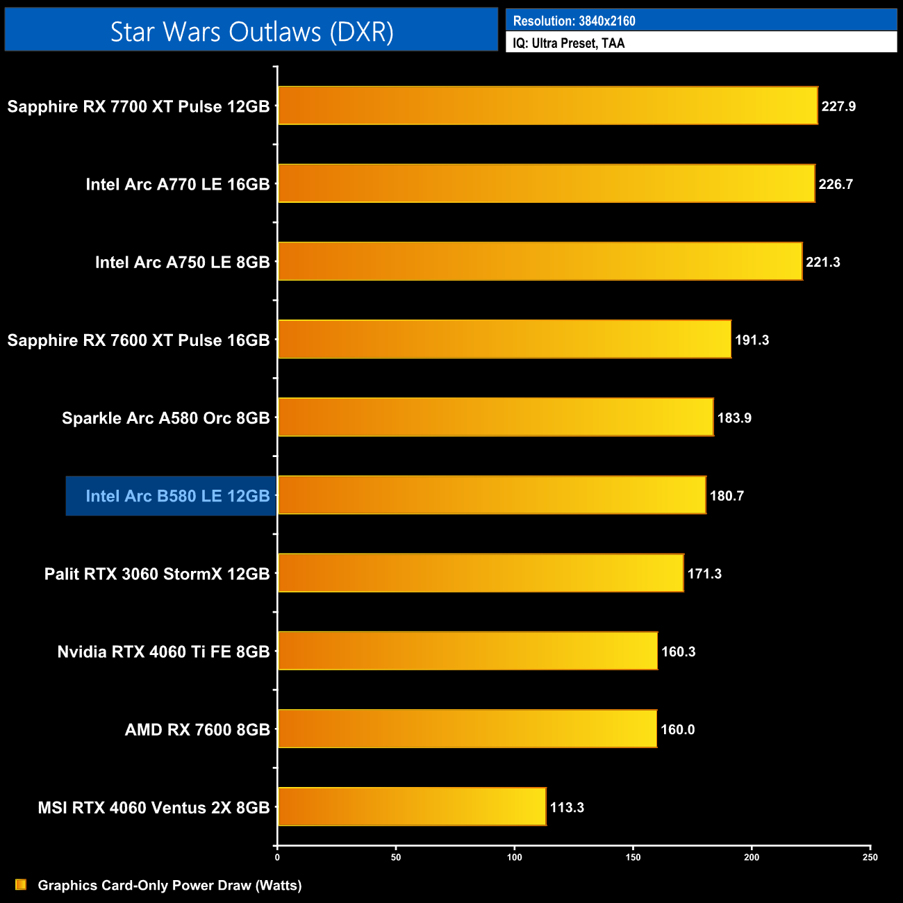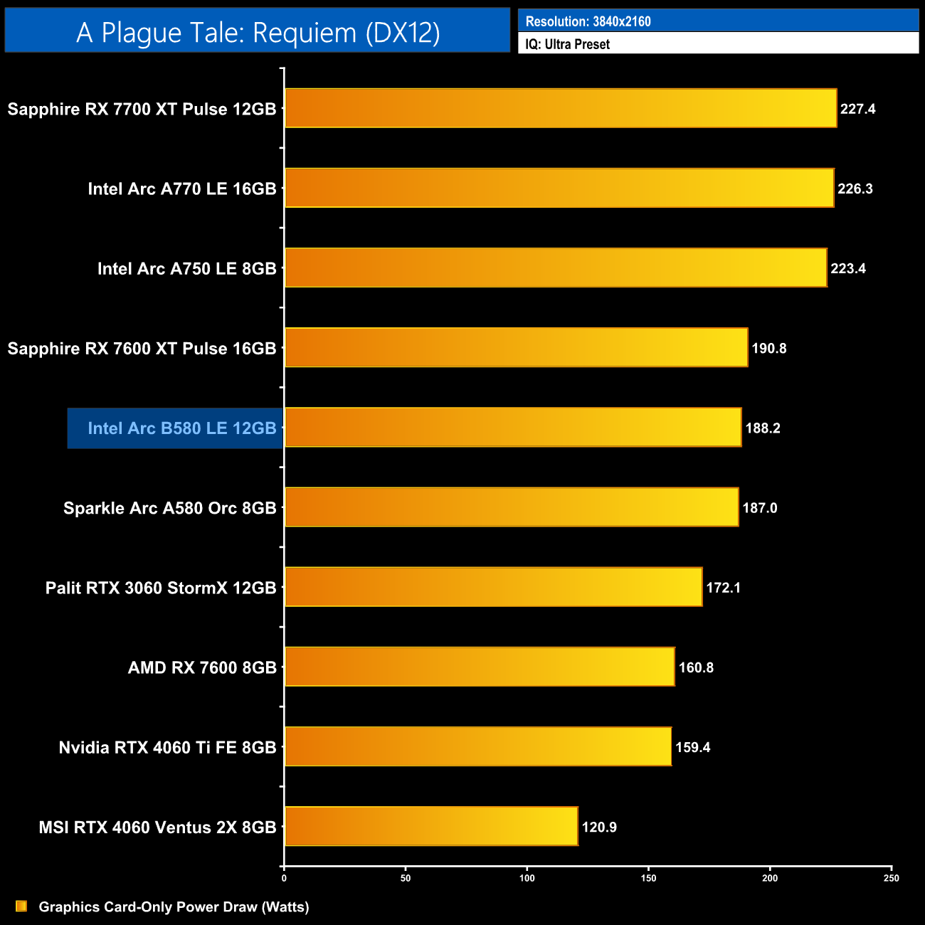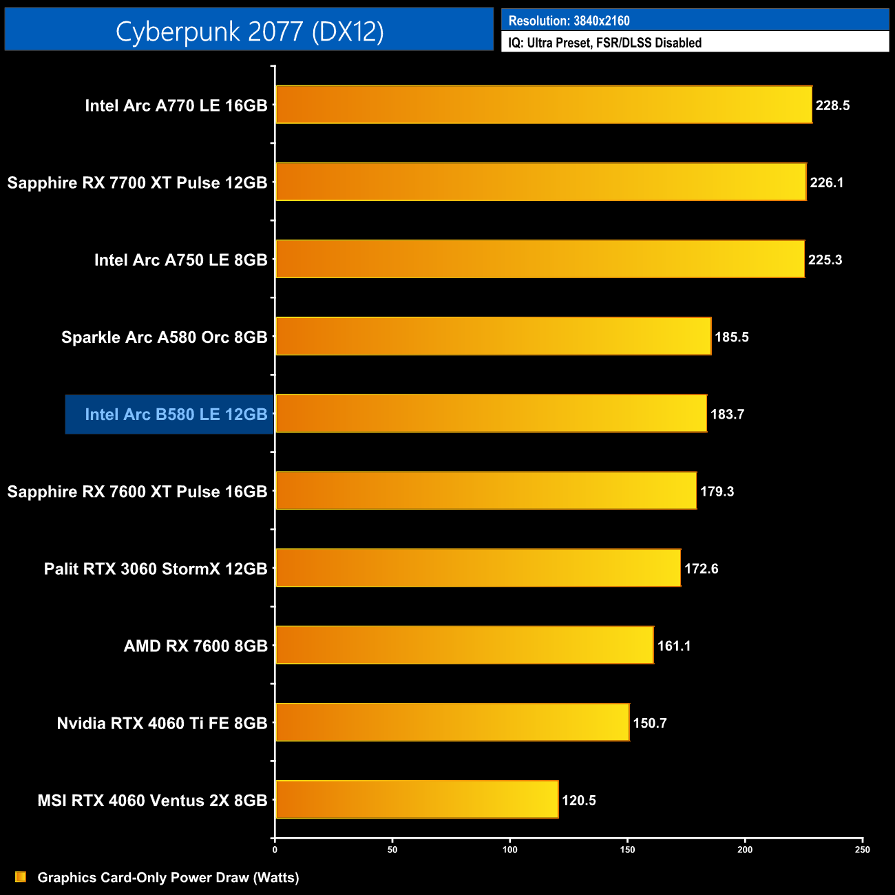 The same goes for 4K ray tracing figures – power actually drops slightly as the GPU is often bandwidth starved at these settings, resulting in power dips.