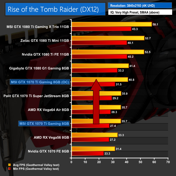 To see how this overclock translates in the real world, we ran all 5 of our test games again, at 4K resolution, along with Fire Strike and Fire Strike Ultra.