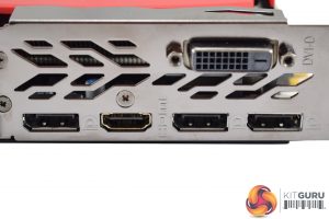 Lastly, the Gaming 8G keeps the standard display outputs: 3x DisplayPort 1.4, 1x HDMI 2.0b, 1x DVI-D.