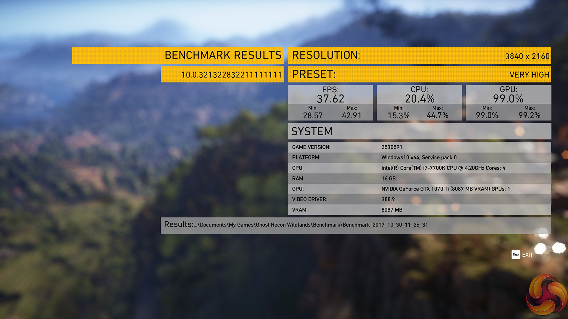 We run the built-in benchmark using the Very High quality preset at 1080P, 1440P, and 4K.