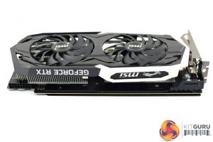 Elsewhere, the front side of the card is home to the MSI logo – the only RGB zone on the card – as well as the GeForce RTX branding which is printed in white.