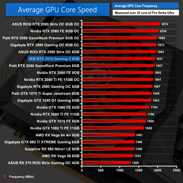 Obviously this is our first RTX 2070 card so we don't yet have any direct comparison data – but I would expect this to be one the highest clocked, if not the highest, RTX 2070 cards thanks to its hefty factory overclock.