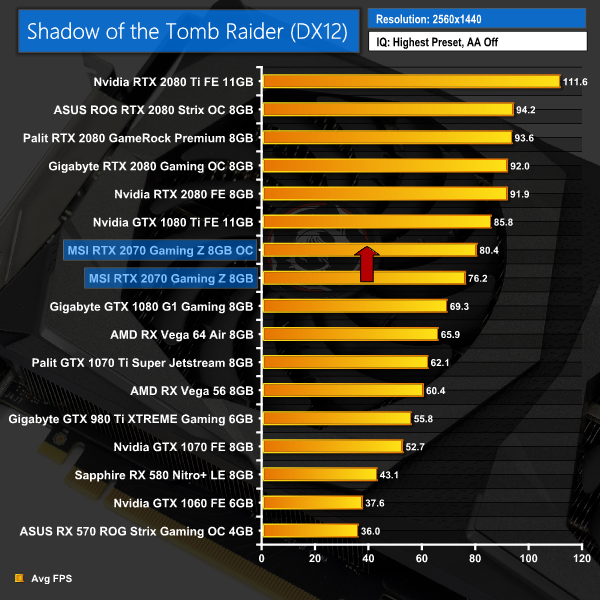 To overclock the Gaming Z, we used MSI Afterburner. We maximised the power limit and temperature target sliders, before adding +40MHz to the core and +700MHz to the memory. This isn't a whole lot of extra clock speed – but we do have to remember the Gaming Z ships with a fairly aggressive factory overclock in the first place, so manual overclocking headroom is limited.