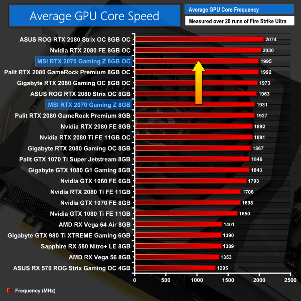 In terms of the clock speed, we saw the Gaming Z run at 1995MHz when overclocked, so a total of 64MHz faster than its stock frequency. As we mentioned, it is not a huge leap as overclocking headroom is limited, but almost 2GHz on the core is impressive nonetheless. It will be interesting to see how other RTX 2070 solutions compare in the coming weeks and months.