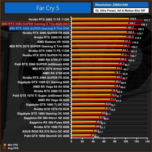 We used MSI Afterburner to overclock the Gaming X Trio, and while we could only add +70MHz to the GPU core, the memory was stable with +1400 – giving it a real-world speed of 18.3Gbps up from 15.5 at stock.