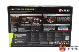 On the back of the box, MSI highlights a few key features of the card including the heatsink, Torx fans and RGB lighting.