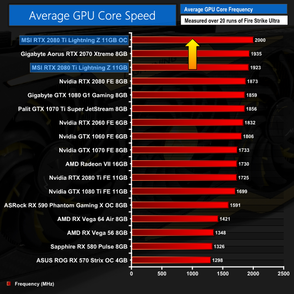 This extra performance is due to the overclock running the GPU at an average speed of exactly 2GHz. It initially hit 2055MHz, but couldn't maintain that frequency – and thus averaged 2000MHz for the duration of our stress test. Considering how heavily factory overclocked the card was out of the box, I'd say this is a very good result.